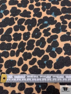 Italian Painterly Floral Clusters Printed Wool Blend Knit – Nude Camel / Black / Dusty Turquoise