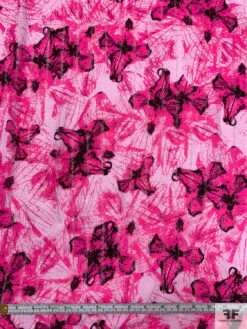 Flocked Intricate Floral Silk Chiffon With Lurex Pinstripes – Dusty Lilac / Black / Silver
