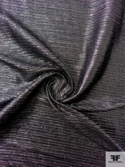 Italian Floral Printed Taffeta Lamé With Vertical Stretch – Purple / Eggplant / Rose Gold