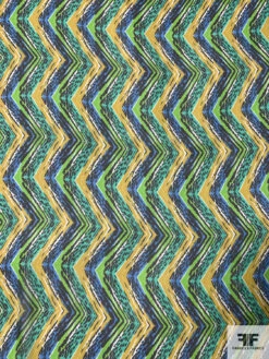 Anna Sui Ditsy Floral Printed Satin Striped Silk Chiffon – Brown / Turquoise / Lime / Off-White