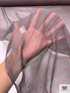 Bold Painterly Trailing Floral Printed Silk Chiffon – Orange / Hot Pink / Magenta / Black