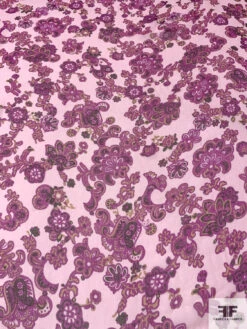 Paisley Floral Printed Slightly Crinkled Silk Chiffon – Magenta / Pale Pink / Yellow Ochre