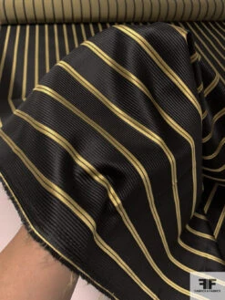 Vertical Striped Silk Necktie Jacquard Brocade – Black / Gold