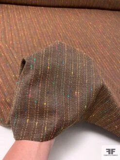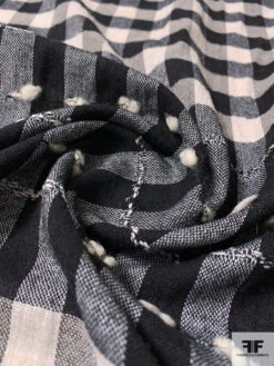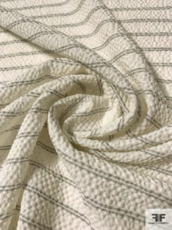 Italian Double Faced Frayed-Striped Wool Blend Coating With BouclĂ© Back – Dark Navy / Off-White