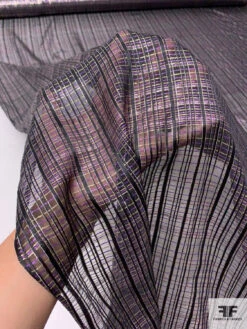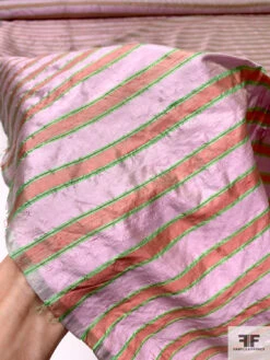Horizontal Striped Lightweight Silk Taffeta With Metallic Yarns – Pink / Coral / Green / Gold
