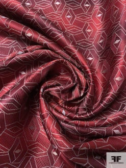 Box-Look Geometric Silk Necktie Jacquard Brocade – Red / Grey
