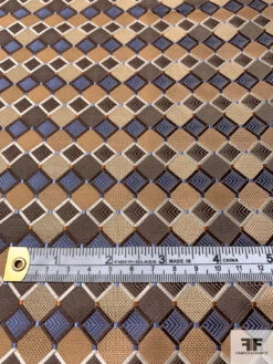 Art Deco Geometric Silk Necktie Jacquard Brocade – Camel / Brown / Tan / Slate Blue