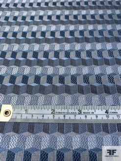 Art Deco Geometric Silk Necktie Jacquard Brocade – Navy / Blue / Turmeric / Champagne