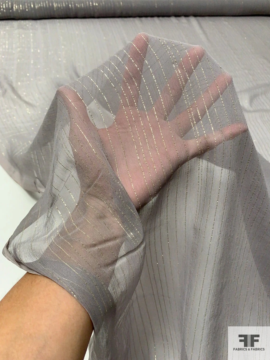 Be the first to review “Solid Silk Chiffon With Gold Lurex Pinstripes – Dove Grey / Gold” Cancel reply