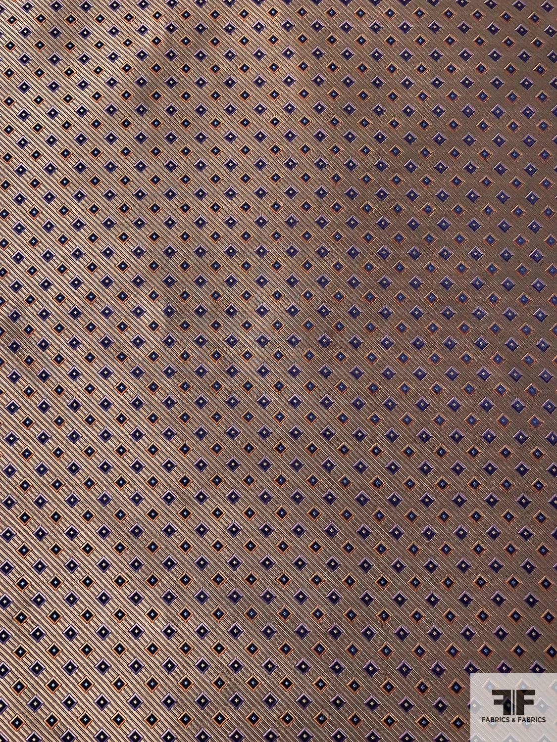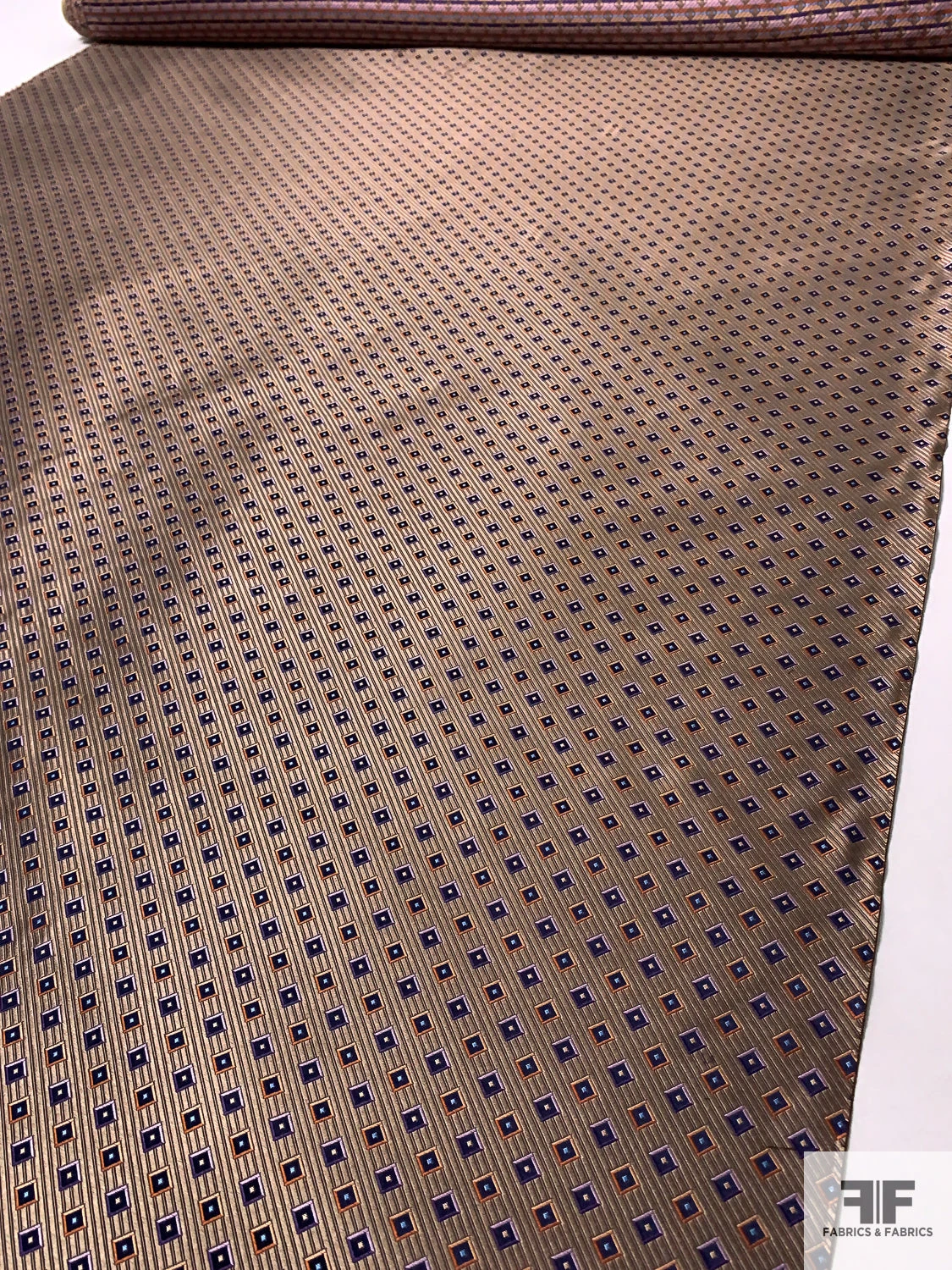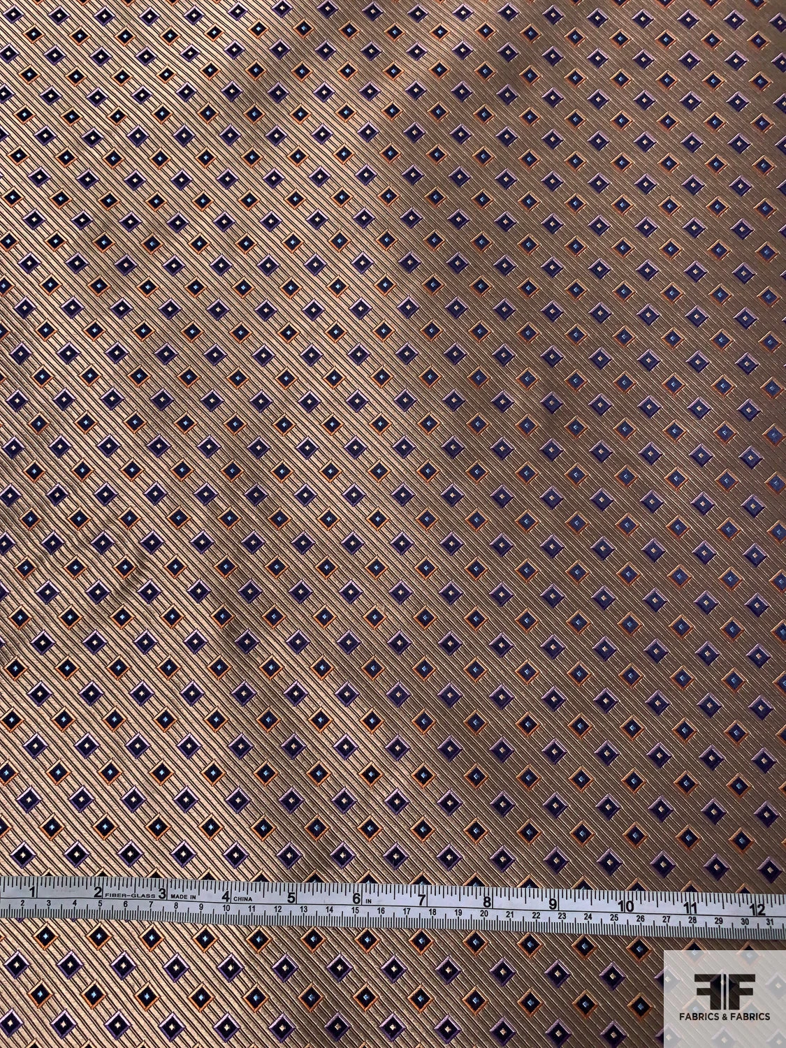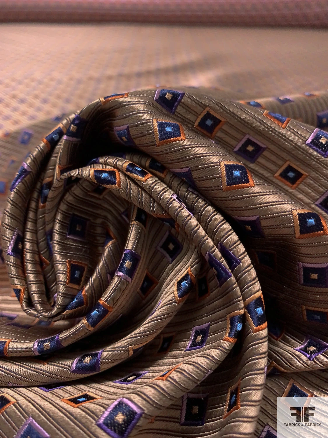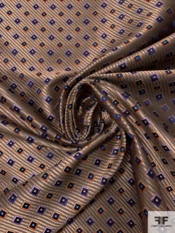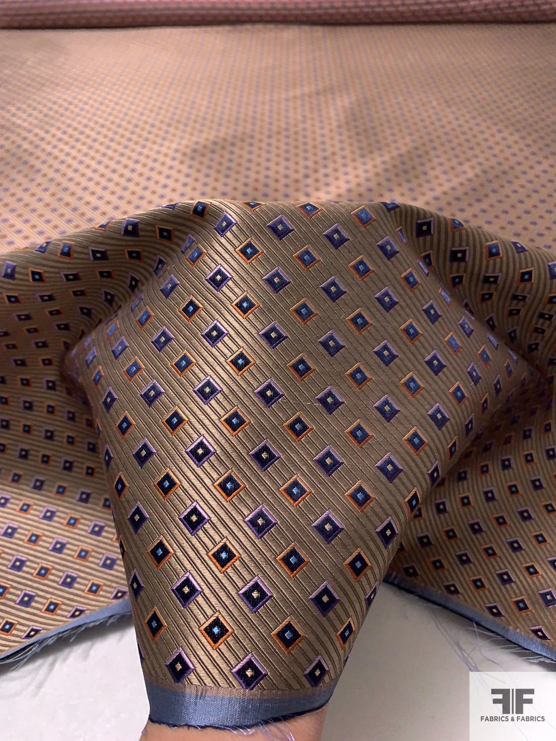 Be the first to review “Squares And Diagonal Striped Silk Necktie Jacquard Brocade – Tan / Orange / Navy / Purple” Cancel reply