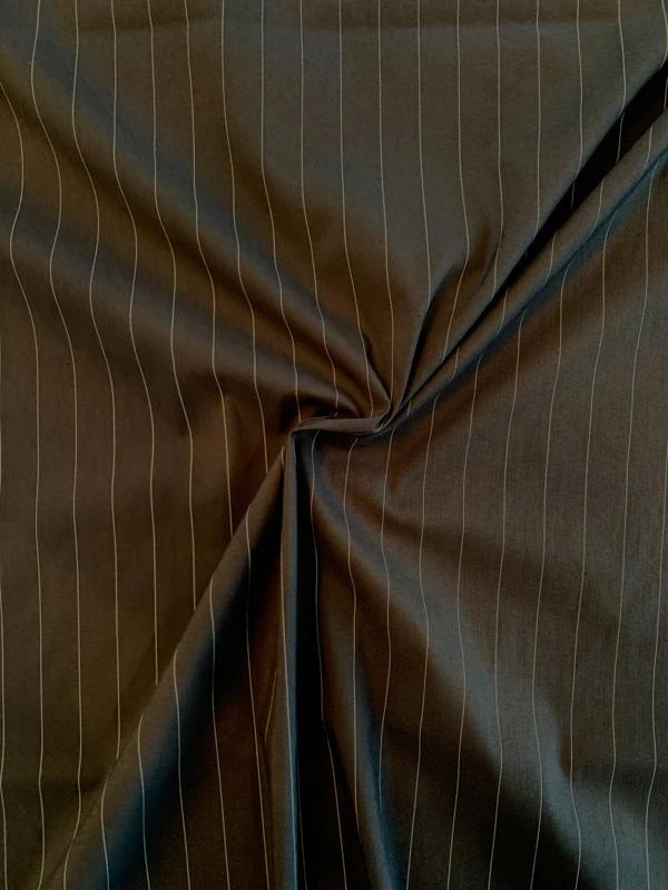This black and white vertical pinstripe cotton shirting marks the height of noir sophistication.