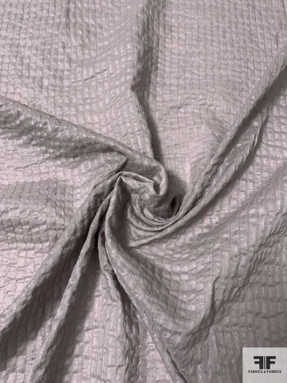 Be the first to review “Vertical Plissé Striped Cotton Voile Shirting With Lurex Fibers – Dusty Lilac Grey” Cancel reply