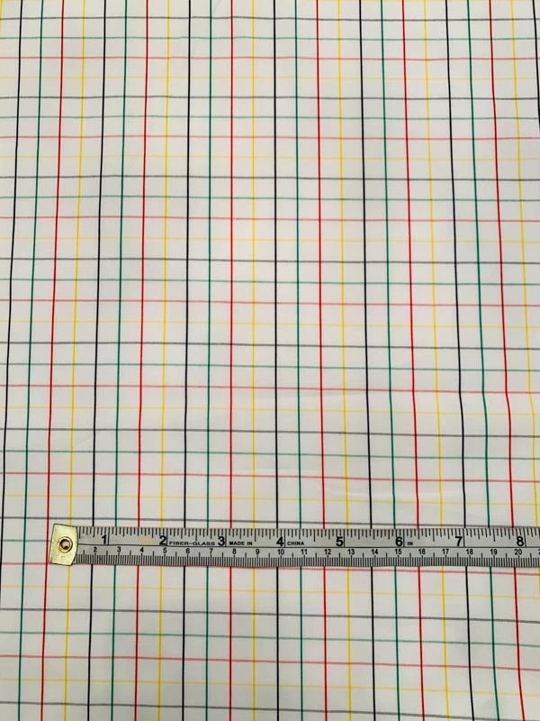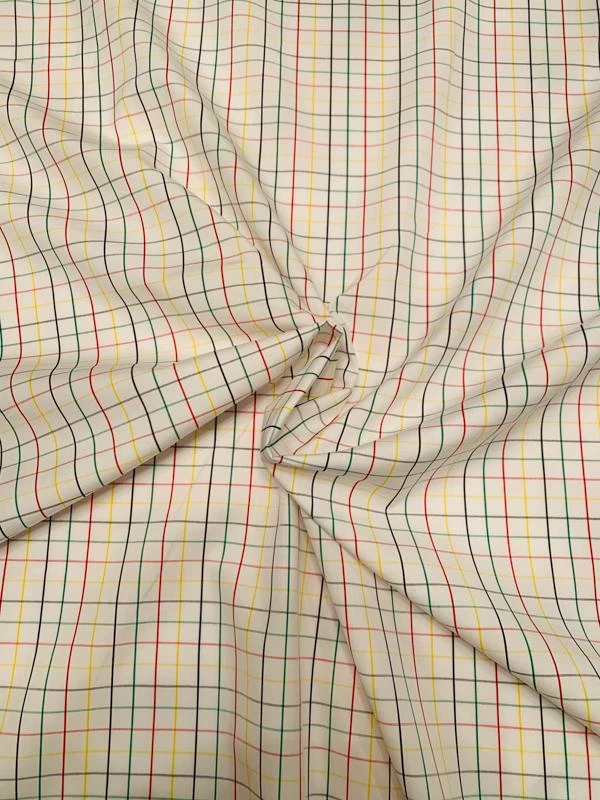 This multicolor windowpane cotton shirting designer fashion fabric is lightweight, breathable, and crisp yet soft. Perfect for a shirt, blouse, or dress.