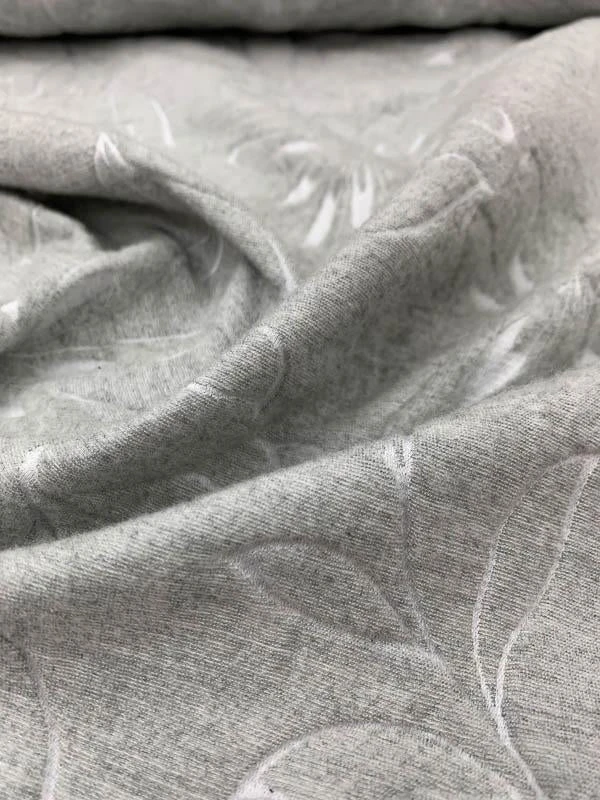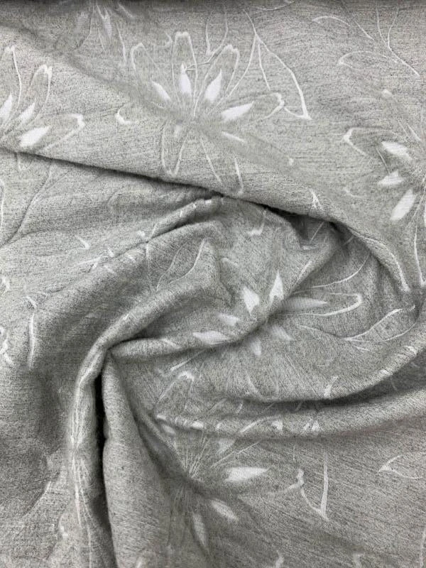 This woven floral burnout-like wool suiting designer fashion fabric in light grey and white will remain durable after repeated wears and is perfect for evening wear, slacks and suits.